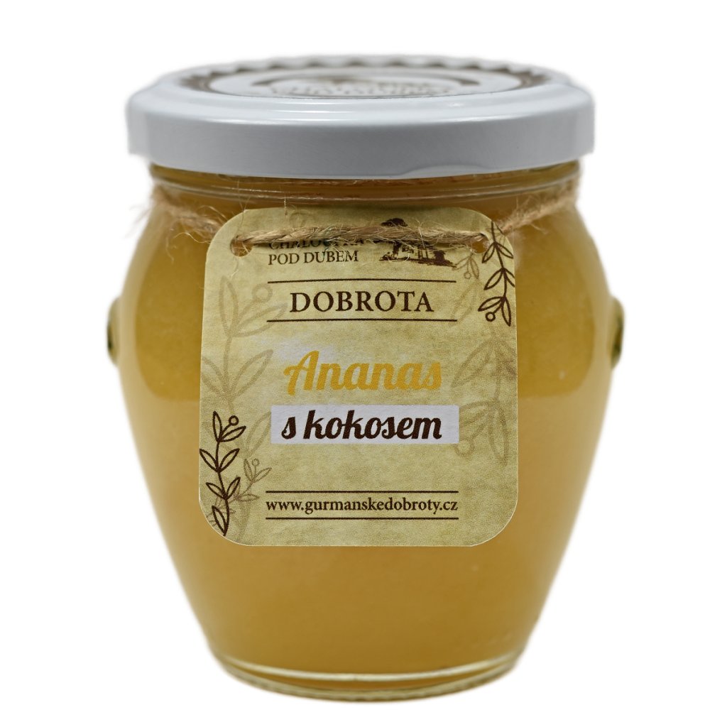 | Složení: | ananas 68%, cukr, kokosové pyré 6,8%, pektin |
