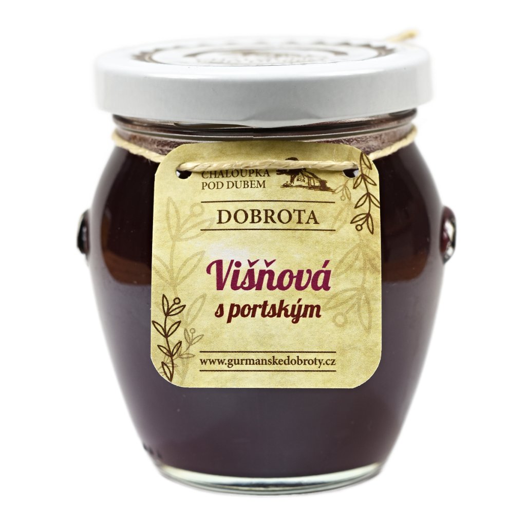 | Složení: | višně kousky 68%, cukr, portské víno 6,8% (sladké víno z hroznů odrůdy Pedro Ximénez, obsahuje siřičitany), pektin |